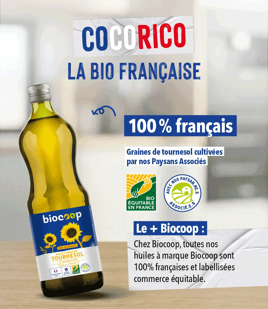 Ce mois-ci (re)-découvrez notre huile de tournesol, fabriquée par l’Huilerie Moog dans l’Ariège, à partir de graines cultivées en France. Nous aurions tout aussi bien pu vous présenter notre huile de colza, de lin, de cameline… ne cherchez pas plus loin, toutes les huiles de notre gamme à marque de Biocoop sont 100% françaises !